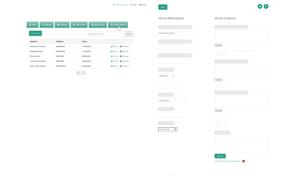 Con esta herramienta podés acceder, crear y manejar las fichas clínicas de tus pacientes directamente desde la plataforma.