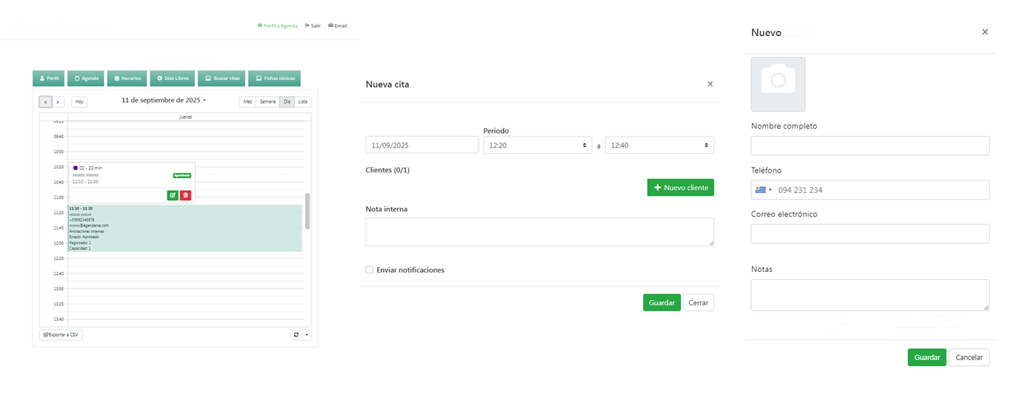 En caso de ser necesario, podrás incluir personalmente nuevas citas en horarios disponibles u ocupados, realizar notas y aclaraciones sobre las mismas, como también cancelar o eliminar las citas marcadas.